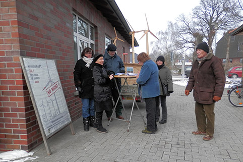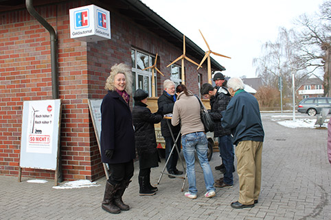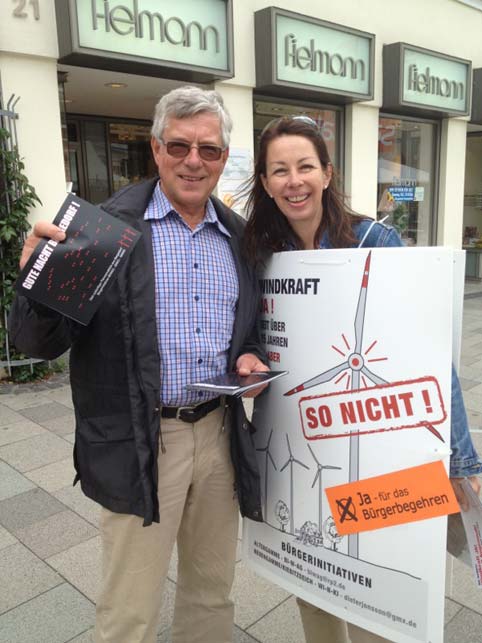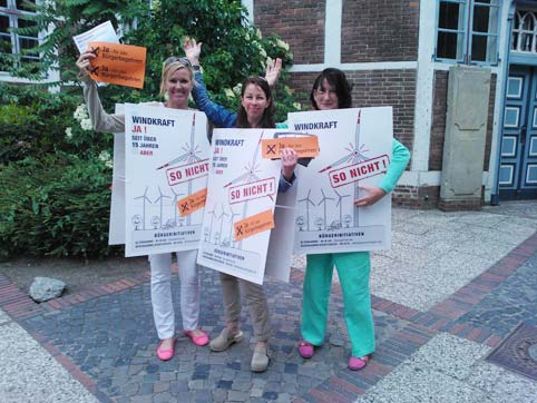 Stimmen Sie für Windkraft mit Augenmaß!!! Informationen der Bürgerinitiativen zum Bürgerbegehren "Windkraft" Informationen der Bezirksversammlung Stimmzettelmuster zum Bürgerbegehren Am 16. Juni haben die Bürgerinitiativen zwischen im Sachsentor intensive Infoarbeit mit allen zur Verfügung stehenden Mitteln - „Plakat-Sandwiche“, Flyer, erklären, reden, diskutieren, lachen, Humor, Rosen verteilen - zum Bürgerbegehren gemacht. Im Sachsentor hatte die SPD einen Infostand, so dass durch die Präsenz der Bürgerinitiativen ein gutes Gegengewicht zu den Argumenten der SPD entstand. Insgesamt haben alle Teilnehmer einen positiven Eindruck mitgenommen. Die Bürgerinitiativen haben viel Fürsprache erhalten und viele sind froh, dass die Bürgerinitiativen das Heft in die Hand genommen haben Die SPD verteilt derzeit zudem einen Flyer um ihre Position zum Bürgerbegehren darzulegen. Leider enthält er einige Fehlnformationen. Stimmen Sie für Windkraft mit Augenmaß!!! |